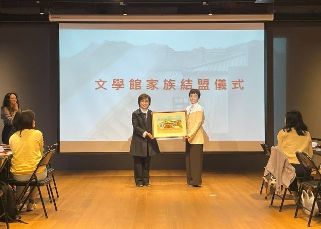 會議首先由臺文館陳瑩芳館長致歡迎詞,強調臺文館搭建「文學館家族」平台,串聯全國文學館舍成為彼此合作夥伴,協力共同「增能、培力、共創、共享」之初衷。她表示,今年也是文學館家族成長的豐收年,7月有清華大學的王默人周安儀文學館加入,此次則再添嘉義文學館和桃園文學館兩名生力軍,將可為文學推廣注入嶄新活力。結盟儀式由陳瑩芳館長致贈建築彩繪畫作,嘉義市文化局圖資科王詠紳科長、桃園市政府文化局文化發展科胡心慈科長分別代表接受,象徵兩館正式成為文學館家族成員。
