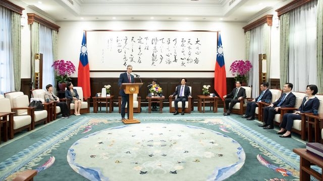 訪賓一行由外交部長林佳龍、臺灣民主基金會執行長廖達琪陪同,前來總統府晉見總統,國家安全會議秘書長吳釗燮也在座。