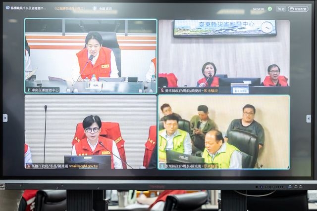 總統抵達後首先聽取簡報,並與臺東縣、高雄市及澎湖縣等地方政府首長進行視訊連線,了解各地目前防災整備情形。