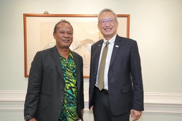 (合傳媒) 外交部政務次長吳志中於(2025)年8月15日代表林佳龍部長午宴友邦吐瓦魯國公共工程、基礎建設發展及水資源部長田互魯(Ampelosa Manoa Tehulu)訪團,表達我國政府對該團來訪的誠摯歡迎之意。