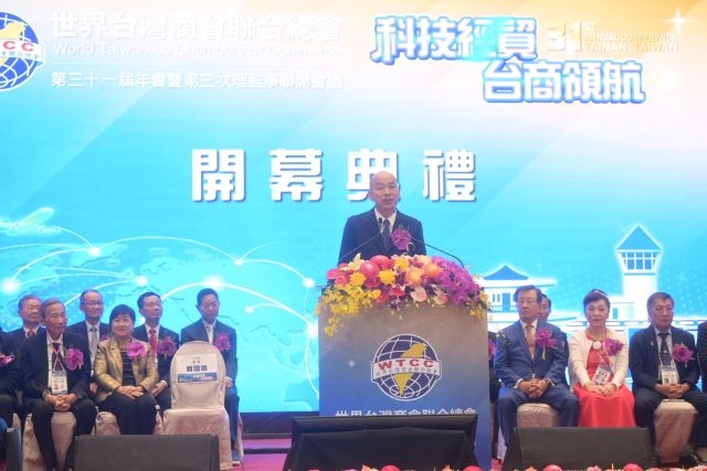 (合傳媒) 立法院韓國瑜院長於本(9月24)日上午應邀出席假臺南福爾摩沙遊艇酒店舉辦之世界臺灣商會聯合總會「第31屆年會暨第3次理監事聯席會議」開幕典禮,現場貴賓包括立法院王定宇委員、僑務委員會徐佳青委員長、經濟部何晉滄政務次長、臺南市葉澤山副市長、新竹市邱臣遠代理市長,以及相關部會代表,「世界臺灣商會聯合總會」(以下簡稱「世總」)第31屆吳光宜總會長、謝美香監事長、歷任創會的總會長等,以及來自全球五大洲的臺商代表逾六百人亦參與盛會,冠蓋雲集,場面盛大。
