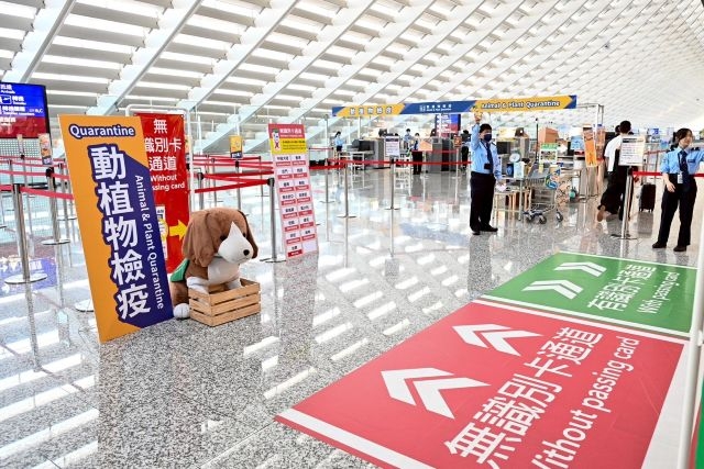 此行視察非洲豬瘟邊境檢疫措施,卓院長首先聽取農業部動植物防疫檢疫署陳宏伯分署長簡報,了解桃園機場入境旅客邊境防檢疫作為,並於致詞結束後,分別視察防檢署入境旅客手提行李X光查驗工作、財政部關務署海關紅綠線檯查驗措施,以及檢疫犬執勤情形。接續,卓院長偕同行政院李慧芝發言人、農業部陳駿季部長、內政部馬士元次長、財政部謝鈴媛次長、衛生福利部莊人祥次長、財政部關務署彭英偉署長、農業部防檢署杜麗華署長、內政部移民署陳建成副署長、海洋委員會海巡署許靜芝副署長、張雅琳立委、桃園市政府蘇俊賓副市長及桃園國際機場公司楊偉甫董事長等人與檢疫犬一同合影留念,並前往華儲公司視察快遞貨物非洲豬瘟查驗作業,分別檢視含有可疑加工肉品的快遞貨物、X光儀檢監控室作業流程,以及檢疫犬查驗貨品工作情形。