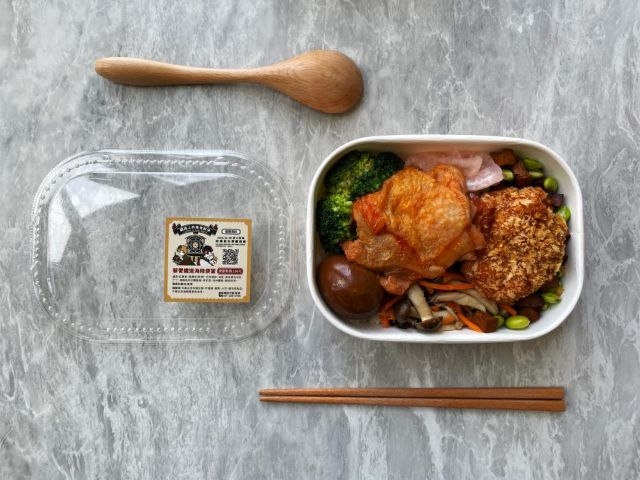 本款便當採雙主菜,嚴選微辣烤雞腿排與炸花枝蝦排,象徵餐車料理的豐盛與講究,呈現鐵道飲食中精緻與儀式感的一面。主食選用紅藜飯,加入臺鐵經典滷蛋及其他配菜搭配,傳承熟悉的台鐵便當風味。