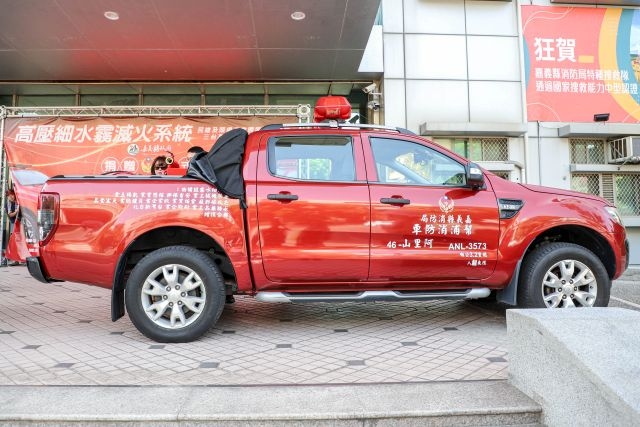 (合傳媒) 民雄及頭橋產業園區20家廠商聯合捐贈嘉義縣消防局3台高壓細水霧滅火系統,設備總價達190萬,嘉義縣長翁章梁代表接受並頒贈感謝獎狀,由衷感謝在地成功人士及企業的慈善義舉。