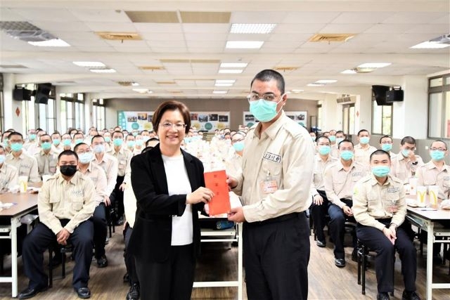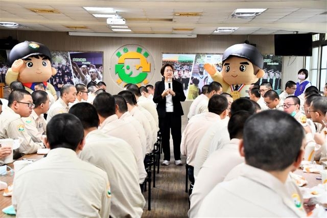 (合傳媒) 彰化縣長王惠美關心彰化子弟兵,今(5)日上午由縣府民政處副處長陳俊南和彰化軍人服務站長魏治民等人陪同,前往成功嶺替代役訓練中心探視第270梯次一般替代役及132梯次研發替代役的縣籍子弟兵,受到營區長官及受訓役男熱烈歡迎。王縣長現場致贈加菜金及每人一份速食餐點,並以縣長媽媽的口吻叮囑役男把握服役期間鍛鍊身心、立定志向,同時保重身體。期許快樂當兵,平安退伍。