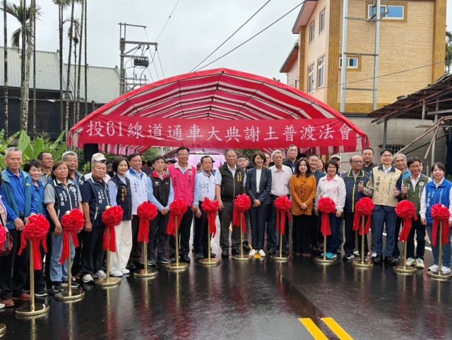 (合傳媒) 內政部國土署中工分署長陳俊雄今(8)日出席南投縣「魚池鄉金天巷瓶頸路段拓寬改善工程」通車典禮。國土署表示,金天巷(投61線)是日月潭通往九族文化村的重要替代道路,過去因道路寬度僅約4.5至5公尺,加上彎道急、坡度陡,基於行車安全考量長年禁止大型車輛通行。中央透過「生活圈道路交通系統建設計畫」補助5,160萬5,000元,補助比率達81%,將道路拓寬至8公尺,並進行彎道改善。完工後正式開放大型客車通行,較過去行駛台21線環潭公路節省近30分鐘車程,將大幅提升觀光效益、運輸效率與在地居民生活品質。