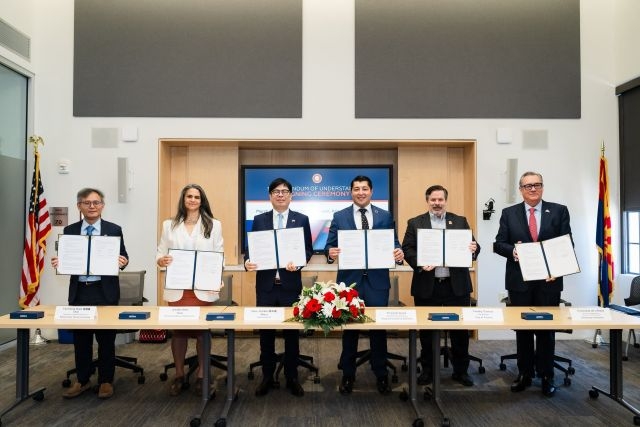 (合傳媒) 繼與亞利桑那州政府、日本熊本縣簽署三方經濟交流促進備忘錄(MOU)後,高雄市長陳其邁馬不停蹄率領市府團隊,前往亞利桑那州第二大城、也是南部最大城市「光學之谷」土桑市(Tucson),與亞利桑那州商務廳、皮馬郡府、土桑市政府、亞利桑那大學(University of Arizona)及國立中山大學共同在當地指標性歷史建築皮馬郡歷史法院共同簽署「六方半導體生態系與全球人才夥伴合作備忘錄」。陳其邁指出,台美日確立半導體戰略三角後,此次拜會暨簽署六方MOU更象徵高雄與美國產官學界的合作,由州政府層級進一步落實至地方政府與學術機構,正式開啟跨國人才培育的合作契機與實質對接。