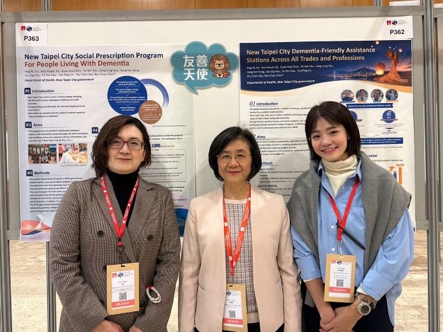 本次會議聚焦減低危險因子、早期診斷、整合照護、失智友善社區及照顧者支持等議題,全球照護趨勢正朝向全人照護發展。新北市於會中發表研究及海報展示,分享「社會處方」及失智友善據點推動經驗,展現在地化創新成果,獲各國學者高度的關注。