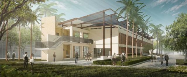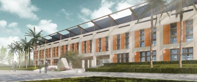 教學行政大樓由楊士正建築師事務所設計監造、偉基營造有限公司承攬施工,目前建築外觀已具規模。設計以白色基調搭配亮橘色遮陽牆,呼應學校樸實中帶有亮點的精神,並透過大面積採光窗、屋頂太陽能光電板與中央步道串聯設計,兼顧節能減碳與空間美學,展現校園永續發展願景。