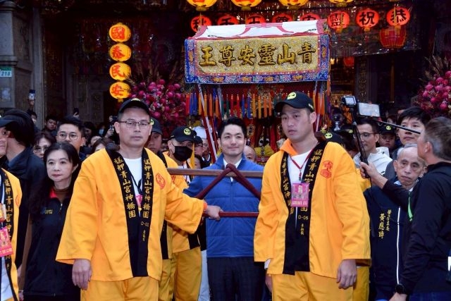 (合傳媒) 臺北市長蔣萬安今(9)日出席「艋舺青山宮暗訪第一日—起轎儀式」,一抵達便向鄉親問好致意。他表示,非常開心來到艋舺與大家結緣,隨著青山宮八將團高亢激昂的喊班聲,恭請青山王爺升壇,一年一度的艋舺青山宮暗訪暨遶境活動也正式揭開序幕。