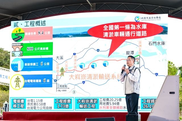 今日包括立法委員呂玉玲、邱若華、市議員李柏坊、徐玉樹、張秀菊、張肇良、經濟部水利署北區水資源分署長謝明昌、經濟部水利署第十河川分署長陳健豐、市府水務局長劉振宇、龍潭區長鄧昱綵、大溪區長徐景揚、台灣電力股份有限公司新桃供電區營運處長蘇啟昌等均一同出席。